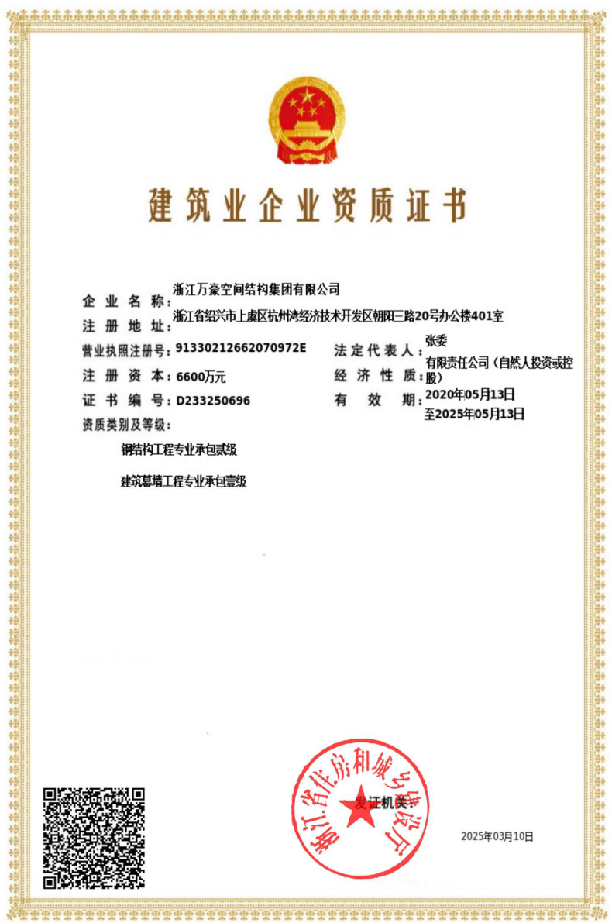 • 中國鋼結構網格結構專項資質證書 發證機構:
