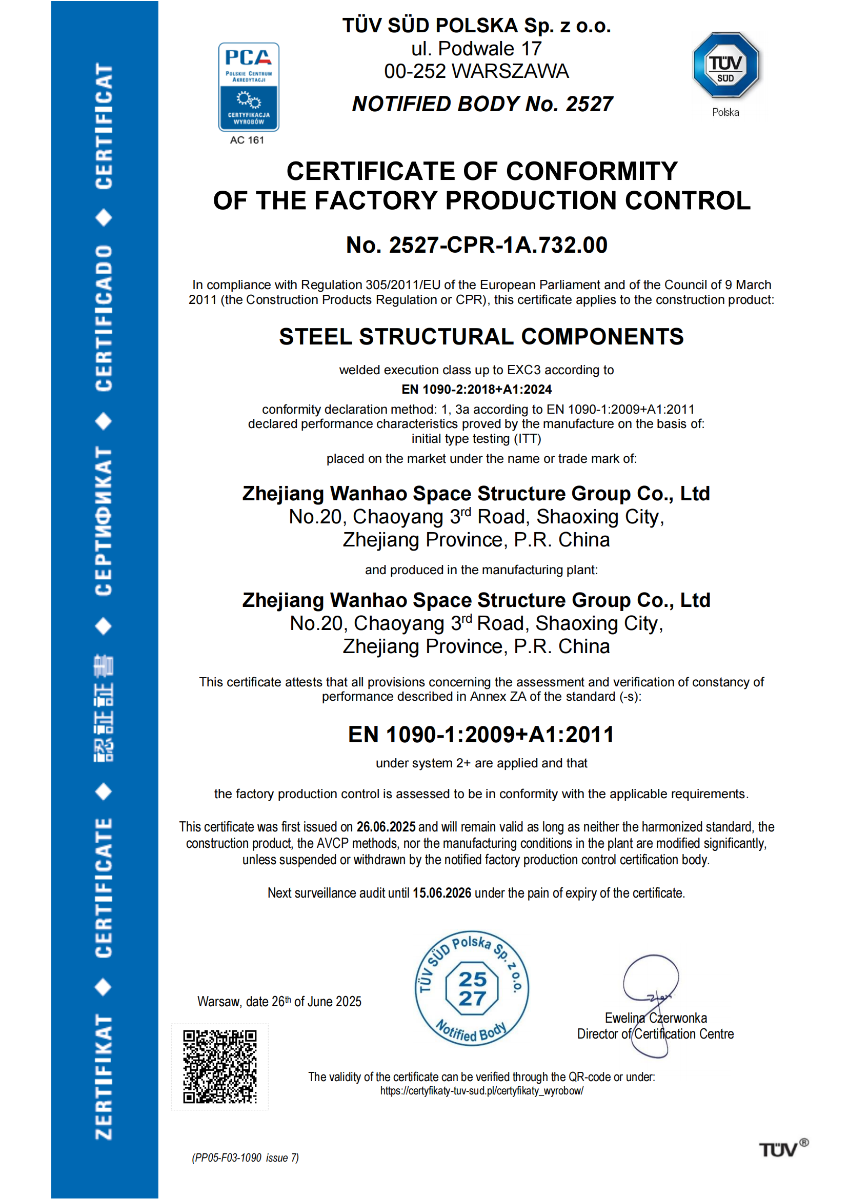 • 歐盟CE認證證書-EN1090-1 發證機構: