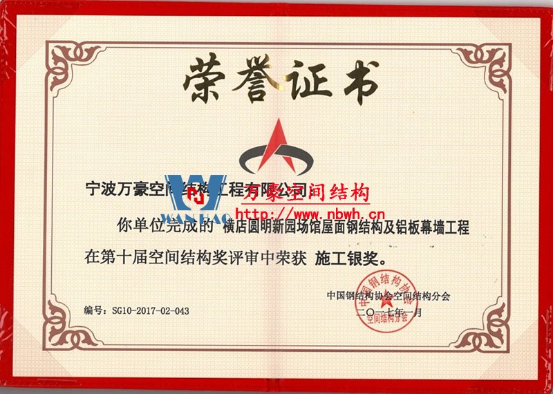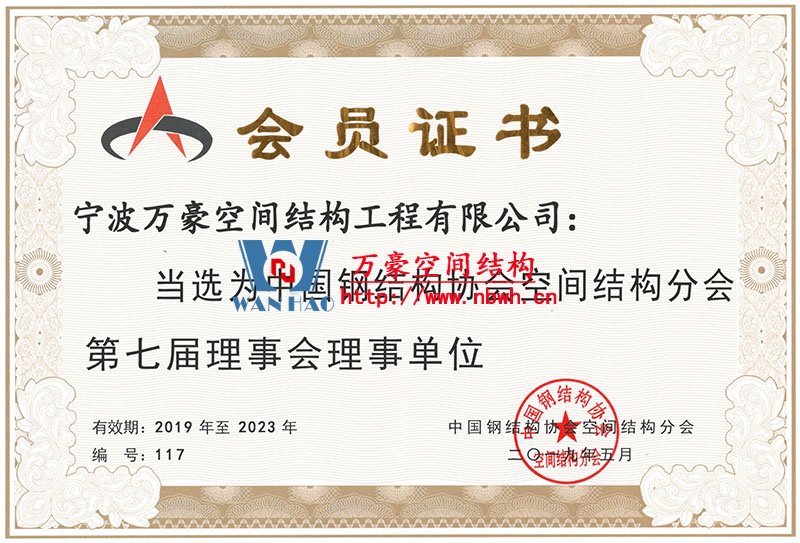• 中國鋼結構協會空間結構分會當選證書 發證機構: