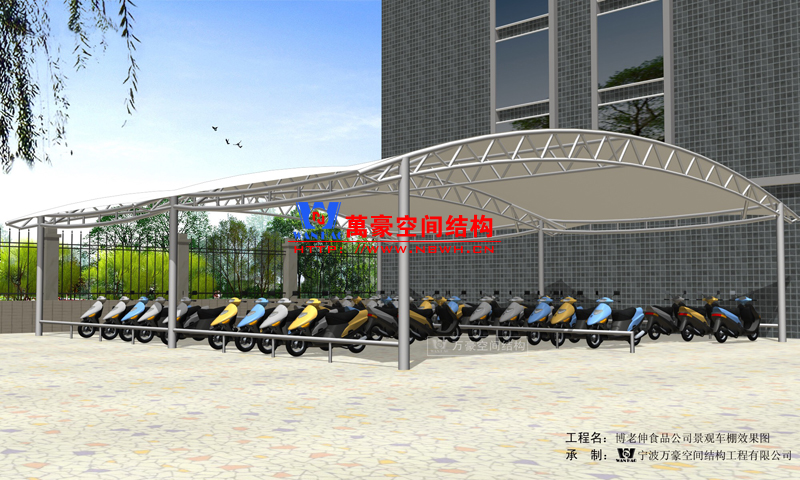 博老申食品公司膜結構自行車棚效果圖