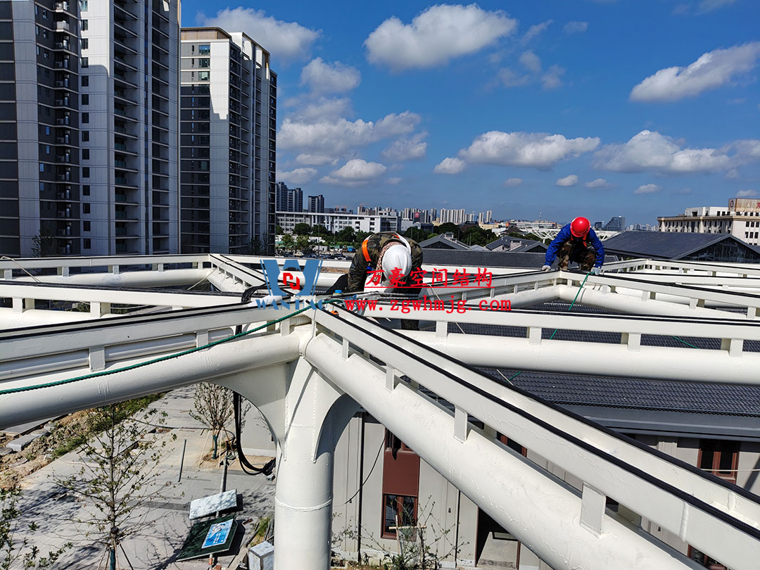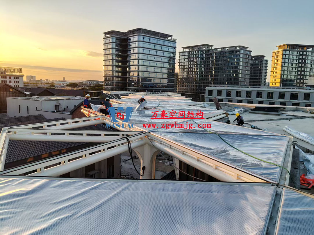 寧波江北未來城社區ETFE氣枕膜結構項目位于莊橋街道,西起康橋南路,東北至寧慈東路,南靠公園。ETFE膜展開面積2100平方米。