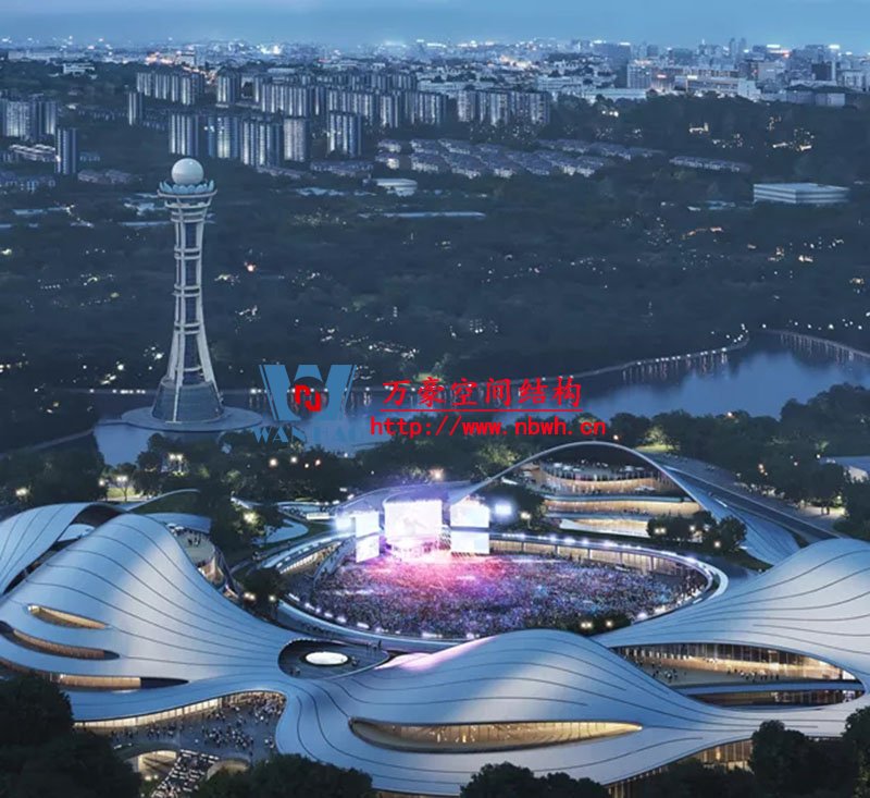 MAD設計了一座公園中的景觀建筑。以中央圓形草坪為中心,人和建筑在此互動、共享,這里成為更開放、更親和、更具活力的新型城市空間。三處場館“手拉手”地連接一起,通過環形屋頂圍合成一個整體。線條有機流動,呼應了江南水鄉的柔美與飄逸,盡顯靈動。