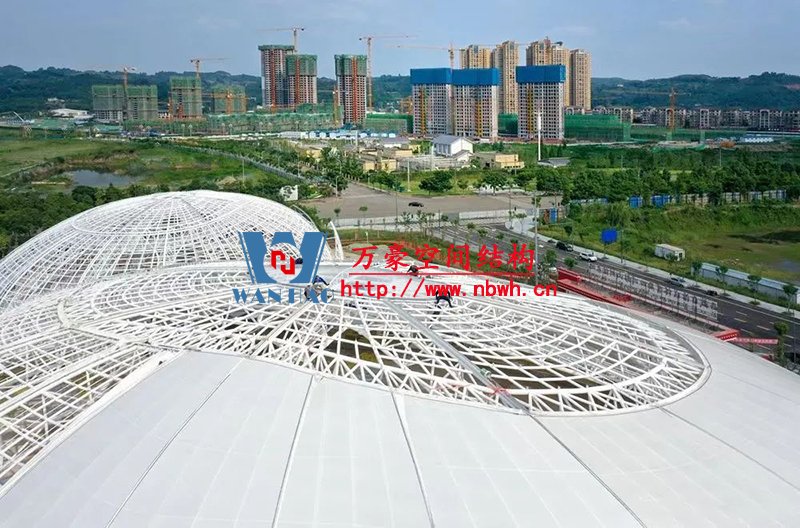 目前訓練中心主體結構已修建完成,屋蓋系統膜結構、室內裝潢正在同步施工。