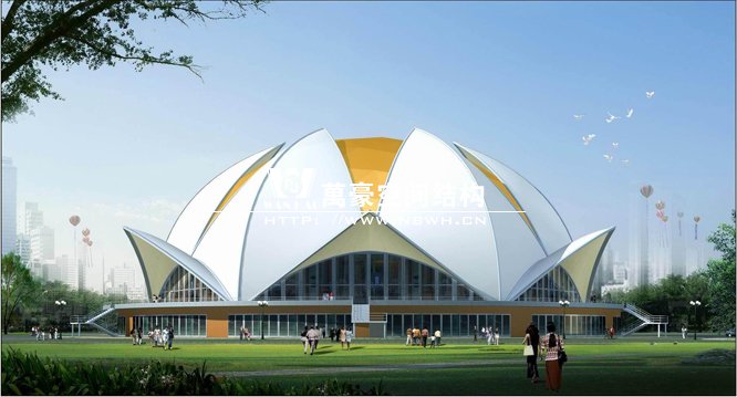 結構類膜結構體育館的主要構成部件就是膜材料、鋼結構和鋼索,不同的膜材和鋼索,其性能及價格各不相同。結構類造型可分為以下二類: