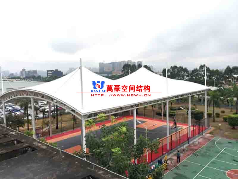 膜結構籃球場,屬于膜結構體育設施,指的是應用于籃球場的膜結構。包括籃球場膜結構頂棚、籃球場看臺膜結構頂棚以及充氣膜結構籃球場等。