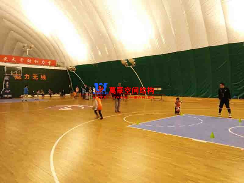 籃球場膜結構頂棚是指安裝在籃球場上方的膜結構,起到遮陽擋雨的作用?;@球場看臺膜結構頂棚指的是在籃球場旁的看臺休息區,座椅處上方的膜結構。而充氣膜結構籃球場則是以特殊的建筑膜材做外殼,配備一套智能化的機電設備在氣膜建筑內部提供空氣的正壓把氣膜建筑主體支撐起來的一種建筑結構系統。