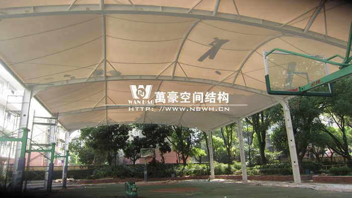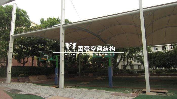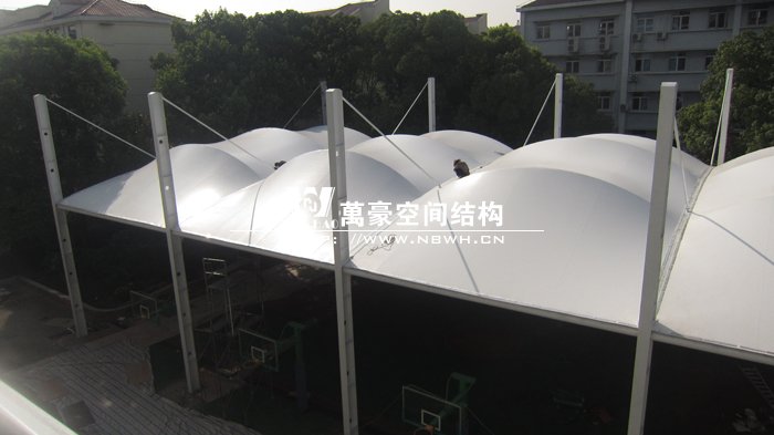 本項(xiàng)目位于上海閔行區(qū)第五中學(xué)內(nèi),球場(chǎng)采用膜結(jié)構(gòu)蓋頂。