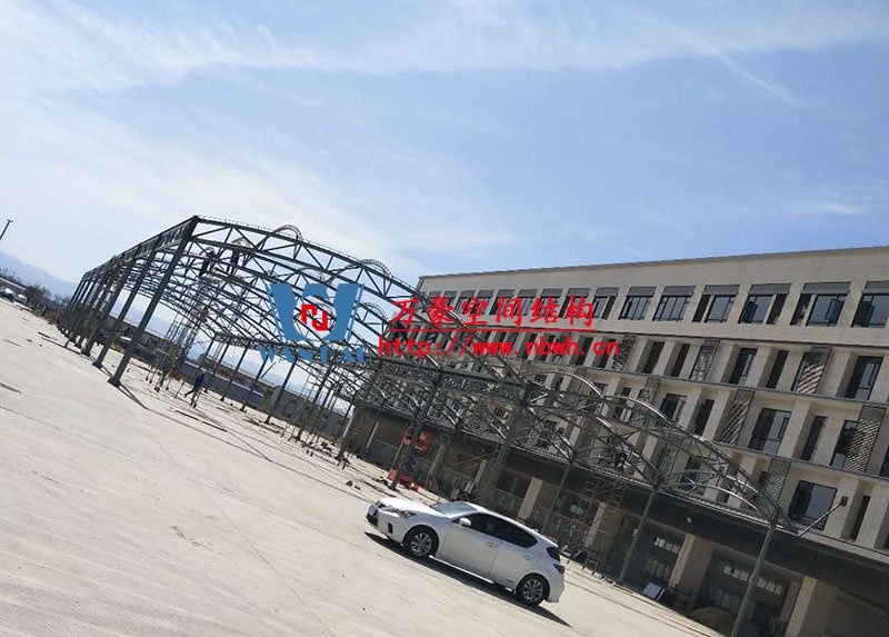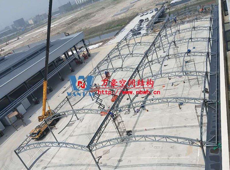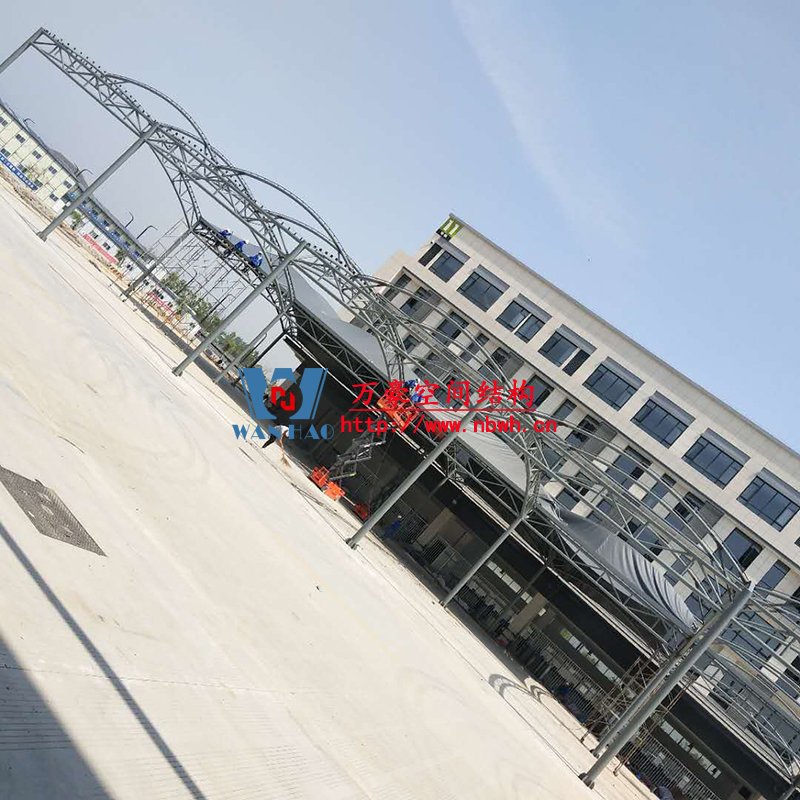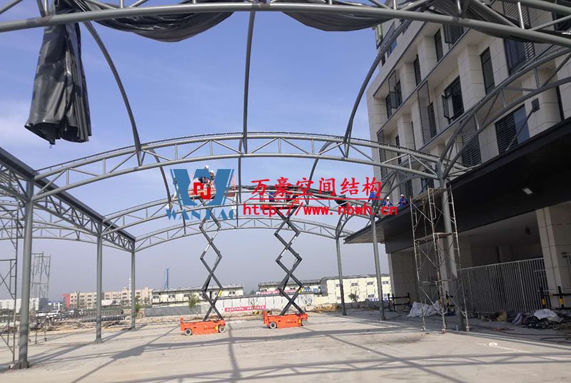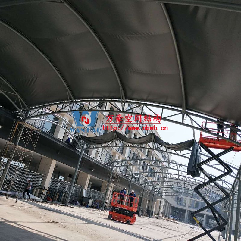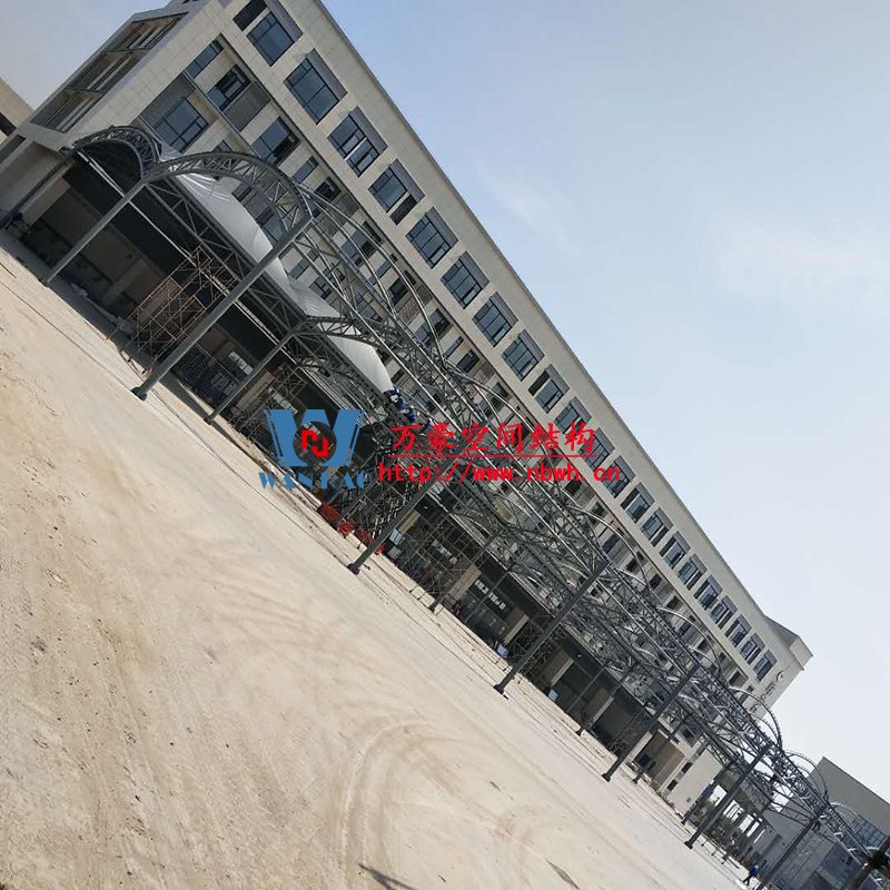 奉化方橋農副鋼結構雨棚工程位于浙江省寧波市奉化市內,此工程用鋼量100噸,膜結構展開面積3500平米,由寧波萬豪空間結構工程有限公司承建。