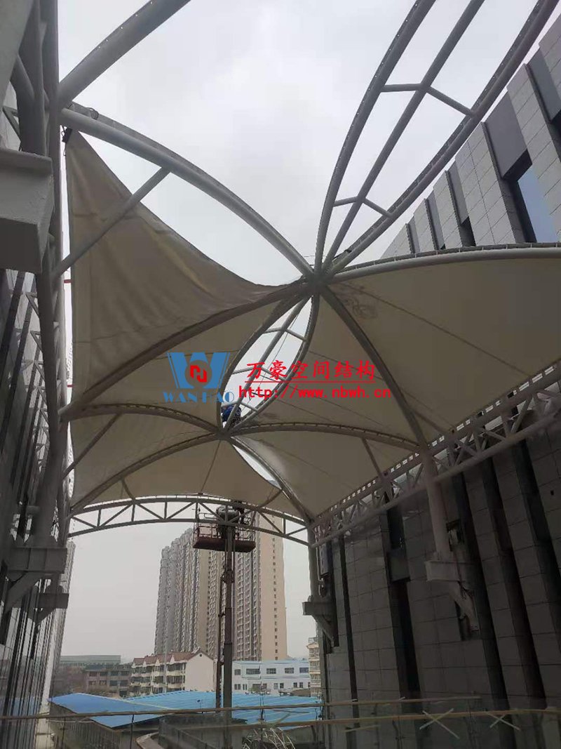 其中,新泰卓越·財富廣場膜結構屋頂項目由寧波萬豪空間結構工程有限公司承建。