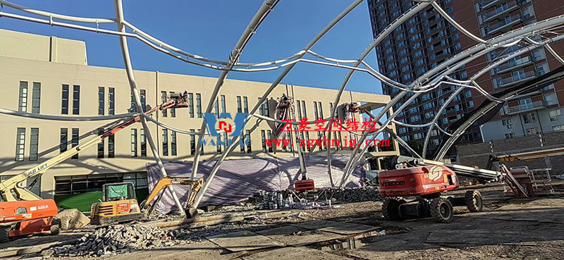 目前,項目鋼結構已完工,準備開始安裝膜結構。