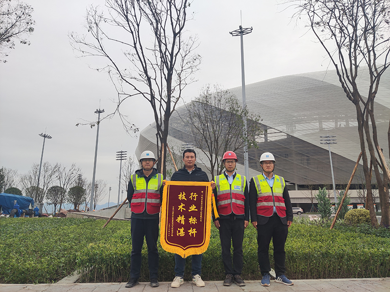 由我司寧波萬豪空間結構工程有限公司負責設計施工與安裝的重慶龍興足球場屋面及立面ETFE膜結構工程,自開工建設以來項目部管理團隊配置齊全專業性強,施工技術水平精湛,各項工作推動及時高效,面對現場出現的各類“疑難雜癥”都能夠第一時間給予解決處理。