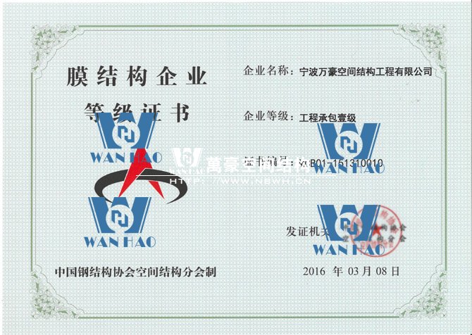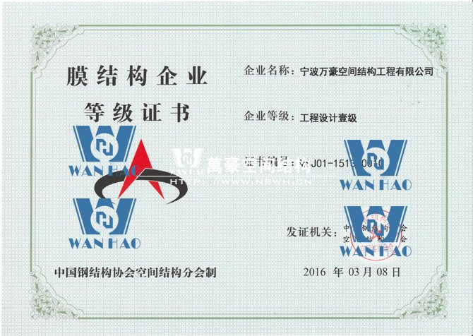 • 膜結(jié)構(gòu)工程總承包特級(jí)(設(shè)計(jì)、制作、安裝)資質(zhì),鋼結(jié)構(gòu)工程二級(jí)資質(zhì)