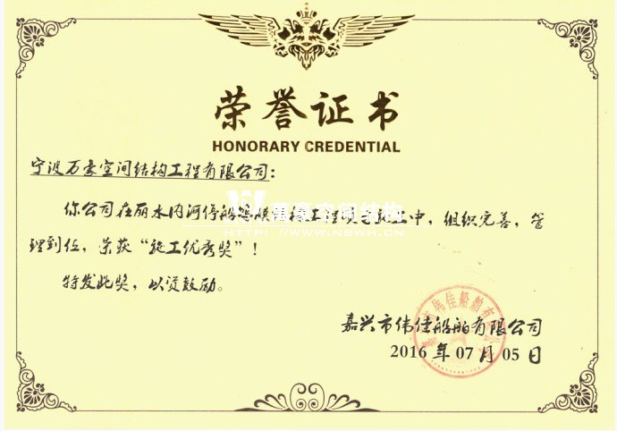 麗水停船塢膜結構工程榮獲“施工優秀獎”