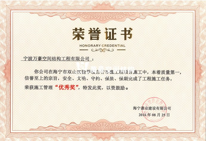 海寧實驗學校車棚項目榮獲“優秀獎”
