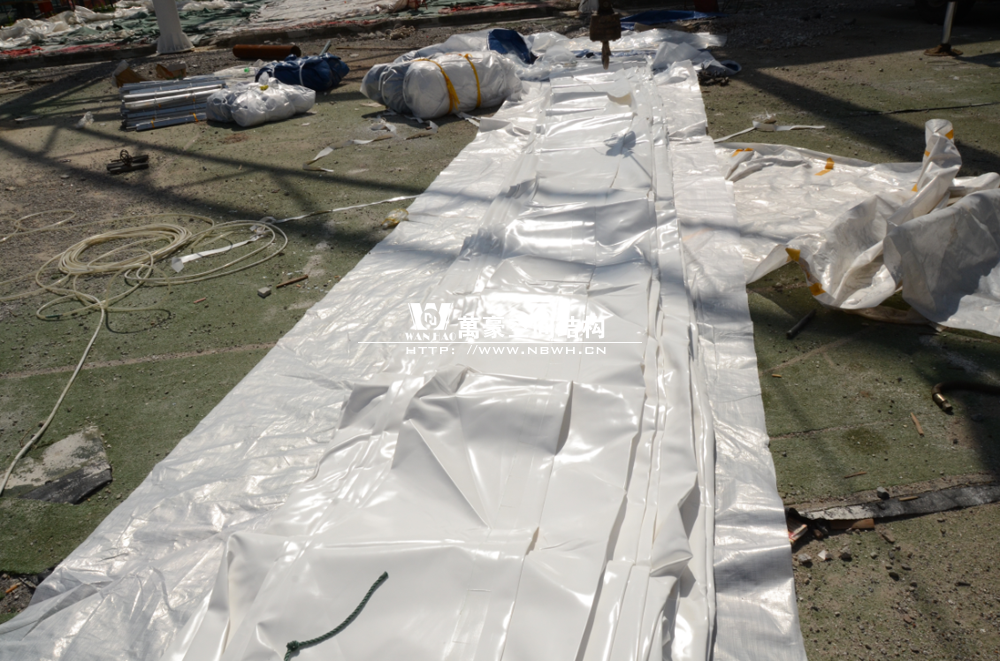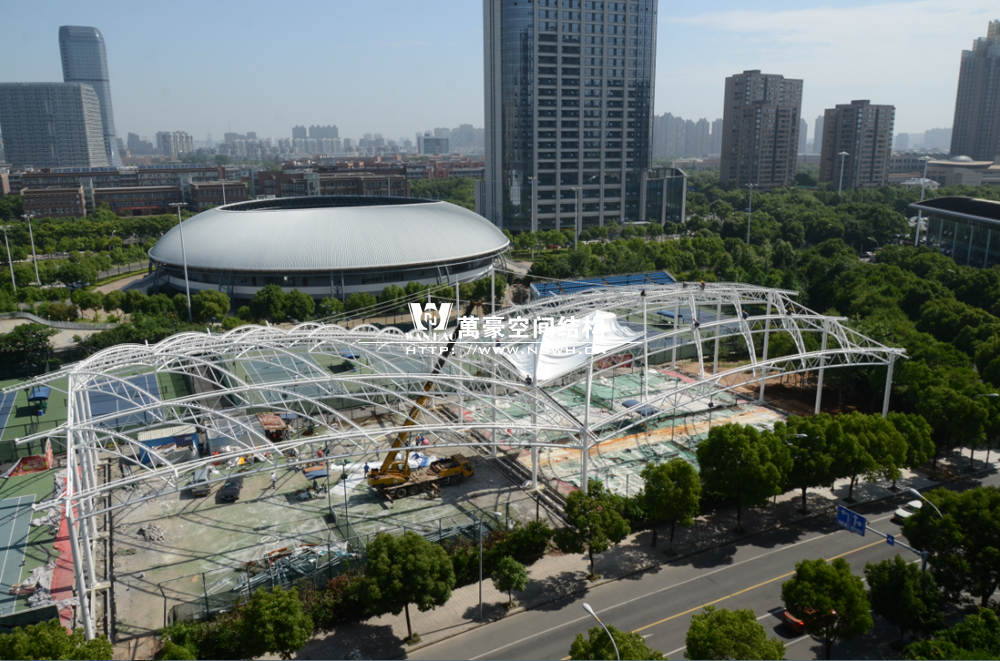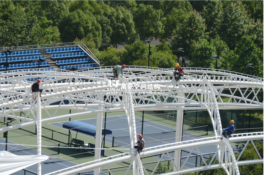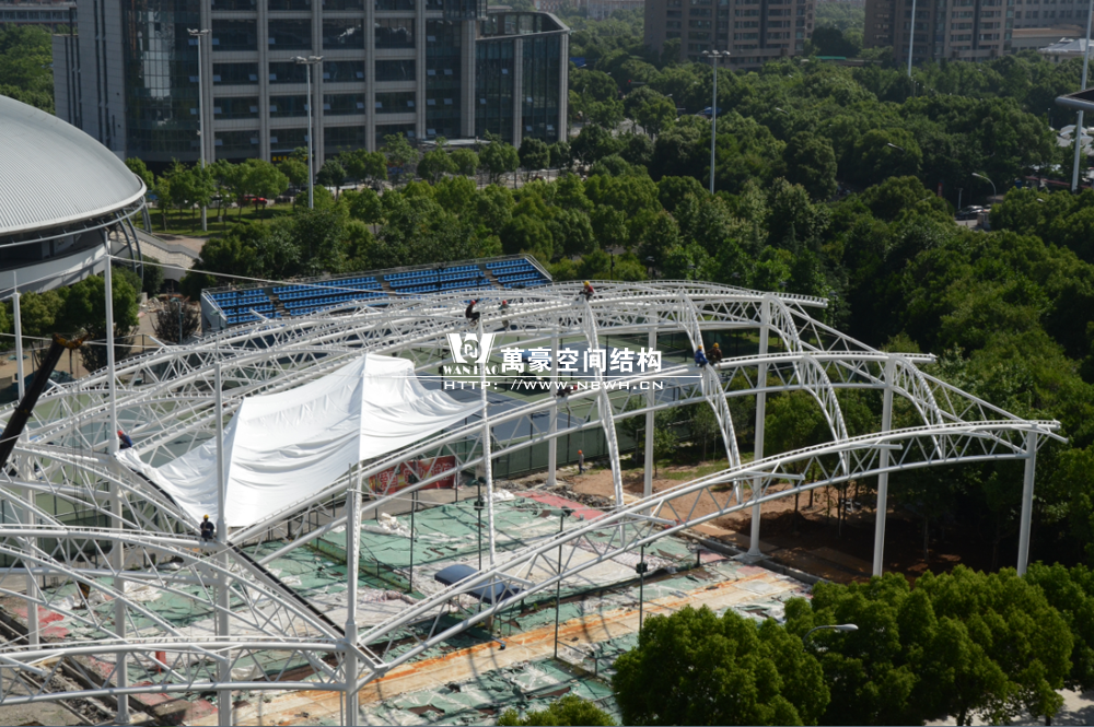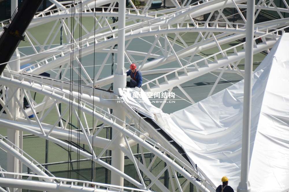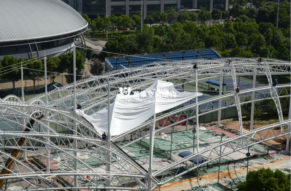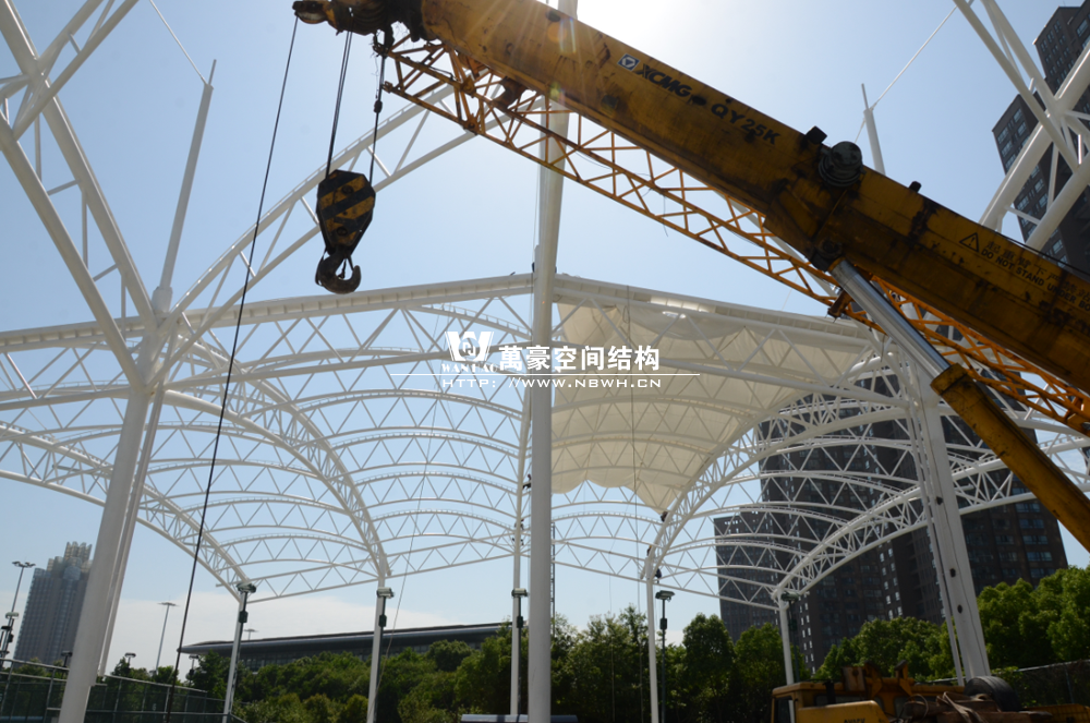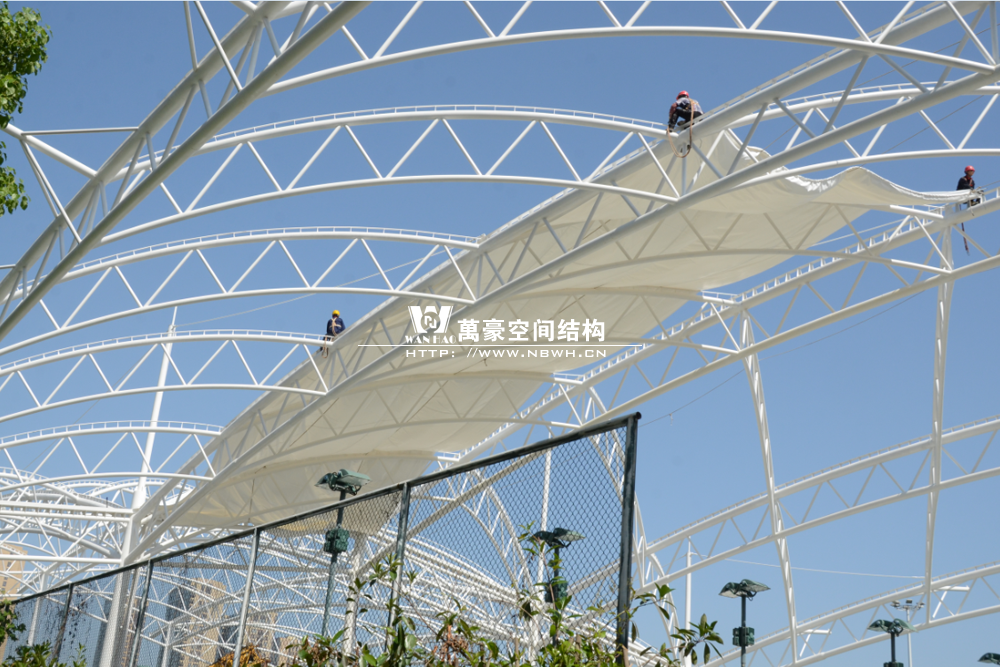 鄞州網球中心膜結構遮陽棚工程鋼結構已完成并經初步驗收