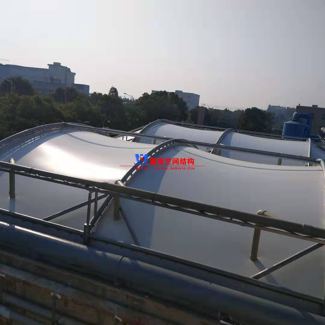 浙江東邦藥業有限公司污水池(好氧池)加蓋密閉膜結構工程位于浙江省臺州市臨海市東邦藥業有限公司內,此工程用鋼量50噸,膜結構展開面積2500平米,由寧波萬豪空間結構工程有限公司承建。