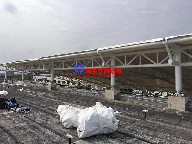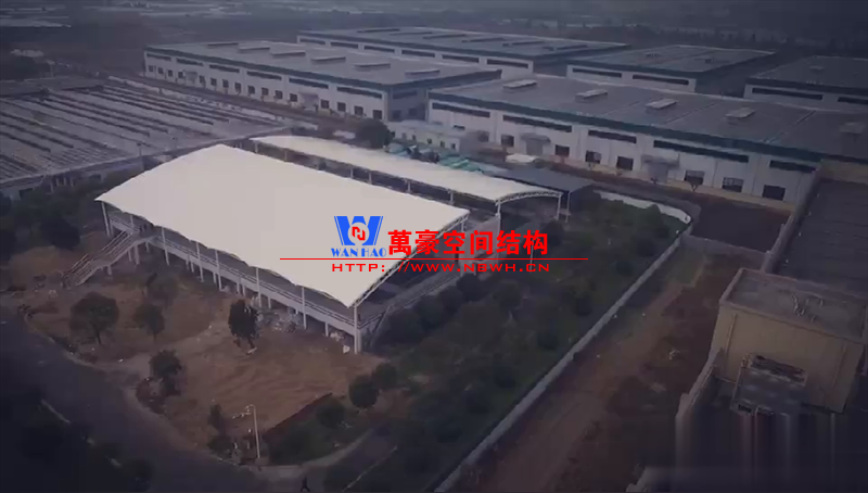 慈溪自來水廠污水池膜結構為工業設施配套工程。結構最大跨度40米,采用桁架結構外覆PVC膜材的形式,建筑面積5000㎡,用鋼量330噸,膜材用量6200㎡。項目施工難度大,實施階段考慮到實際運營的需要并保持自來水廠不受各項因素的干擾及污染(帶水作業),為該市的民生工程。