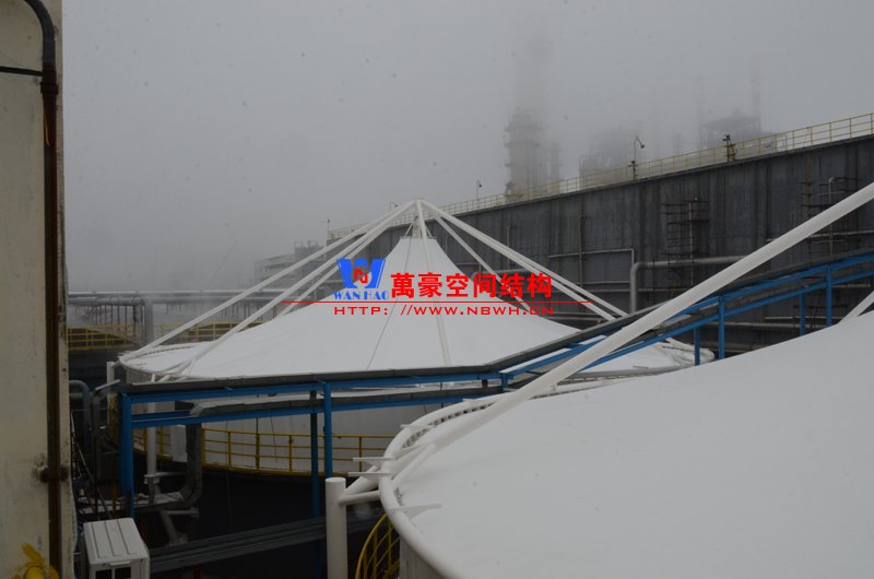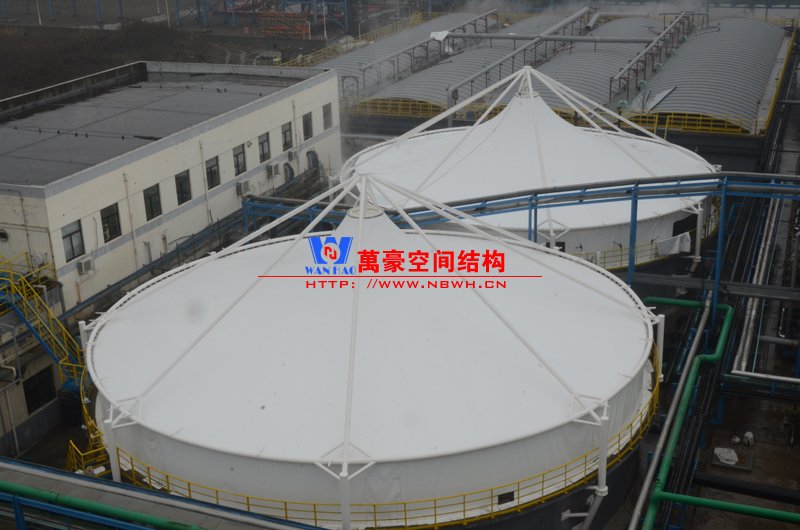 平湖衛星石化污水廠膜結構加蓋密封系統工程項目膜結構展開面積2000平米,用鋼量35噸,由寧波萬豪空間結構工程有限公司承建。